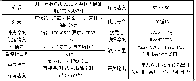 KSP-K系列:丁腈橡膠膜片及O型圈,1/2NPTF壓力接口(其他接口可訂制),防爆產(chǎn)品型號(hào)后面加“-E”